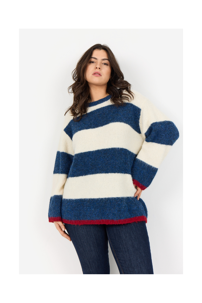 Denne plus size strik har det flotteste stribbede mønster i mange forskellige farver på den. strikken har lange ermer Den er dejlig varm her hvor det begynder og blive koldere og til vinter