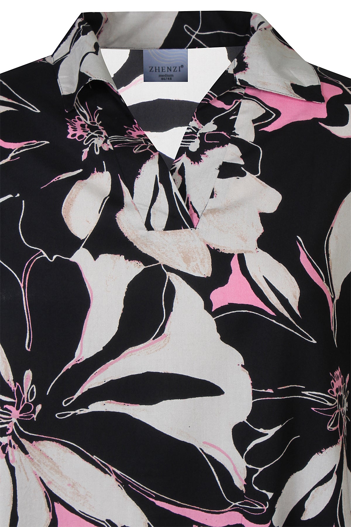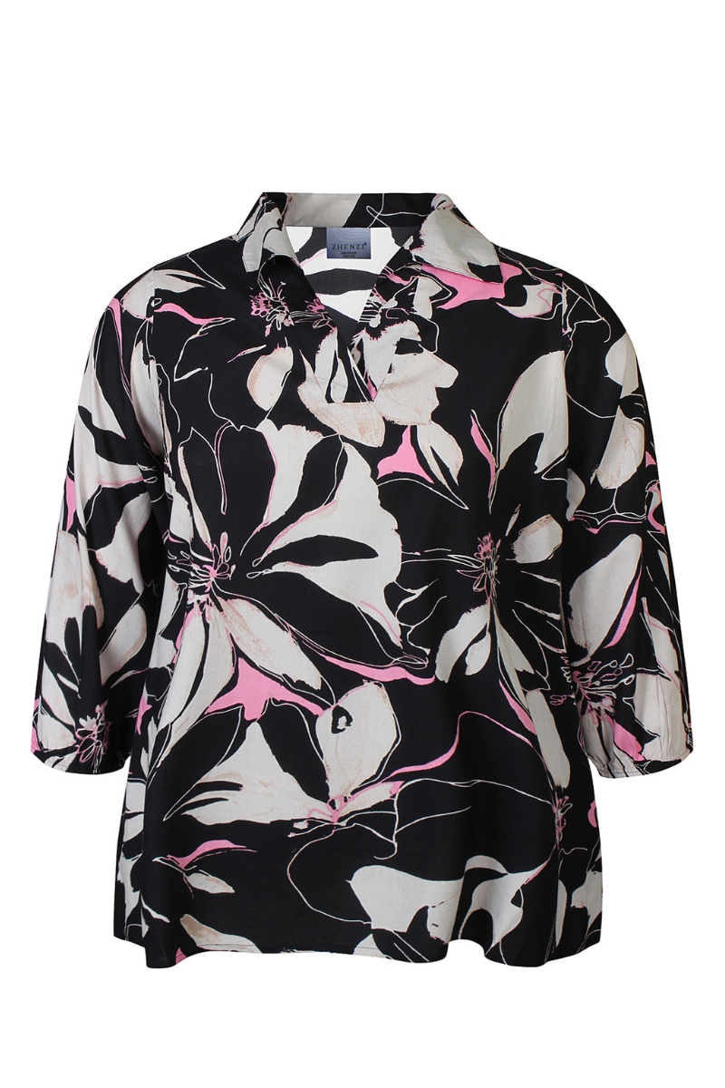 Zhenzi Zh-Amaya 1195 bluse i grøn er et elegant valg til dig, der ønsker et roligt og stilfuldt udtryk med et feminint touch. Det smukke blomsterprint i grønne og lyse nuancer skaber en flot kontrast til den mørke bund.