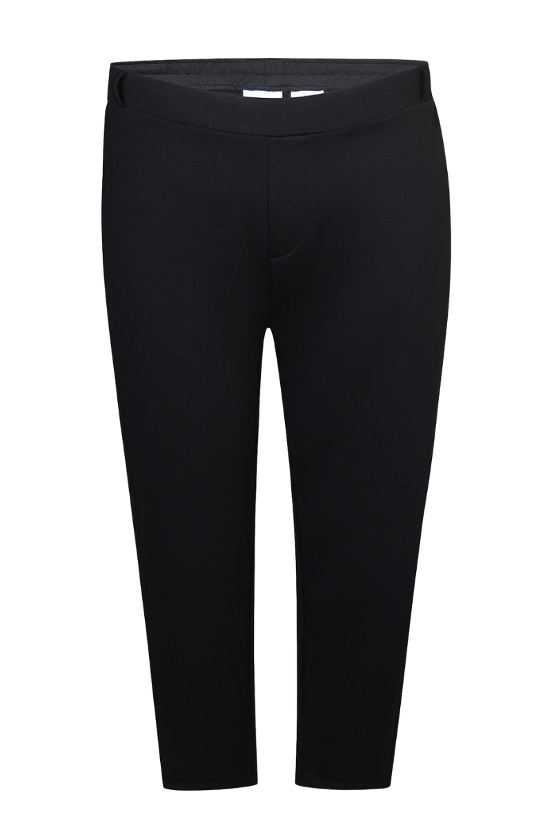 Bukserne har en tætsiddende pasform, som smyger sig om kroppen og giver en flot silhuet – ideel til plus size. De er lavet i 63% viskose, 32% nylon og 5% elastan, hvilket giver en blød, strækbar og holdbar kvalitet. Den elastiske linning sikrer en behagelig pasform hele dagen.